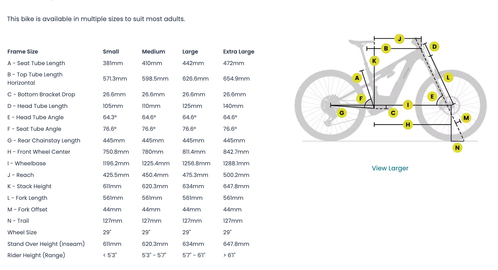 - Rider Height: 5'3" - 6'1"