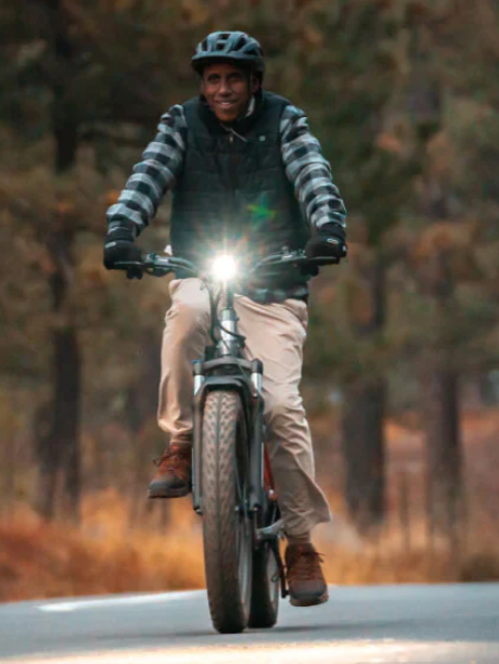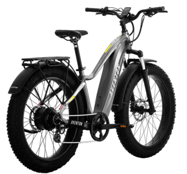 Choose your own adventure with Aventure.2, fully loaded with a torque sensor. Its torque sensor has intuitive technology that amplifies your pedaling cadence, promoting a more natural riding experience. Switch between 4 levels of pedal assist and throttle to bring you more of what’s out there without breaking a sweat. Go beyond the average dirt road with 4” fat tires, a suspension fork, and a powerful motor that will cover ground over sand, rock, or snow with ease.