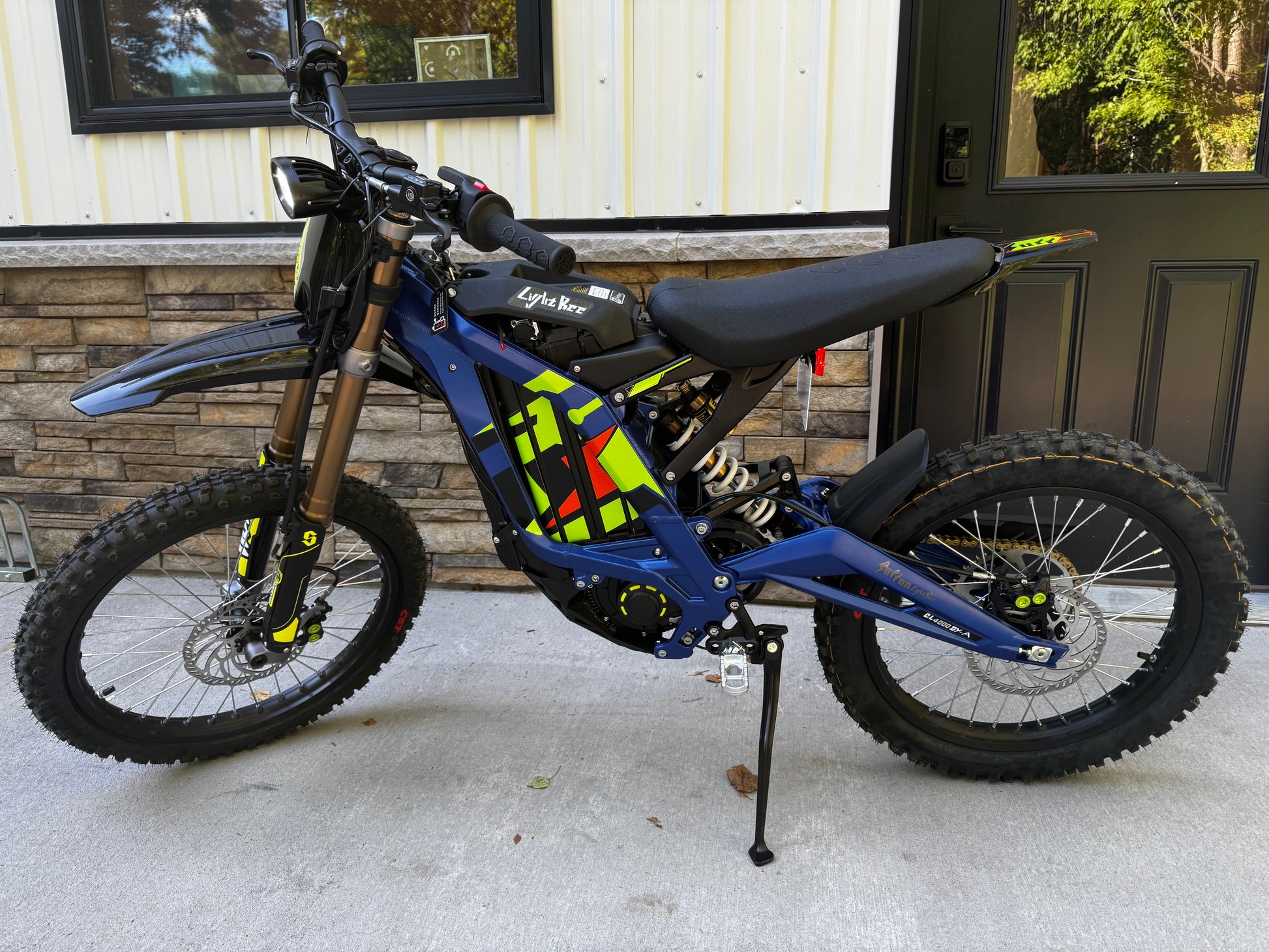The Electric SURRON Light Bee X packs a ton of fun for all terrain riding. 60V and more of peak power from a removable Panasonic Lithium ion battery pack. Forged light weight alloy frame combined with hi-spec components. 4 Piston Hydraulic Disc Brakes Front and Rear. LCD dash with USB charger point.